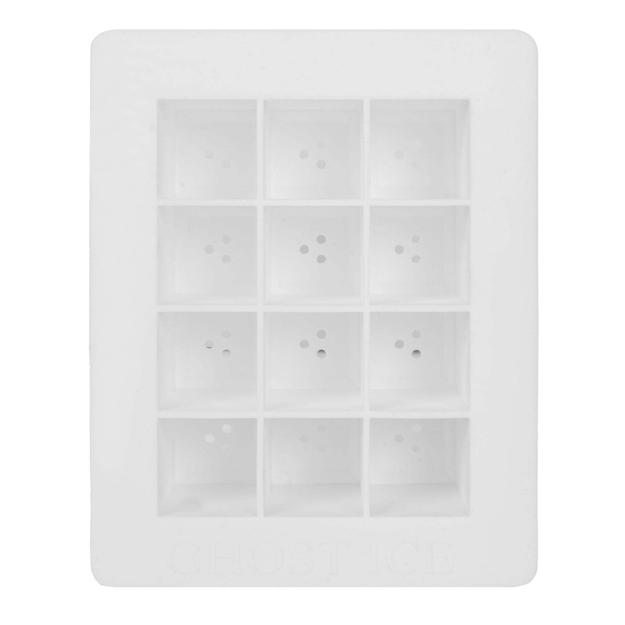 - 12-cube FDA-approved silicone ice mold (10.25" W × 8.25" L × 4" H)
