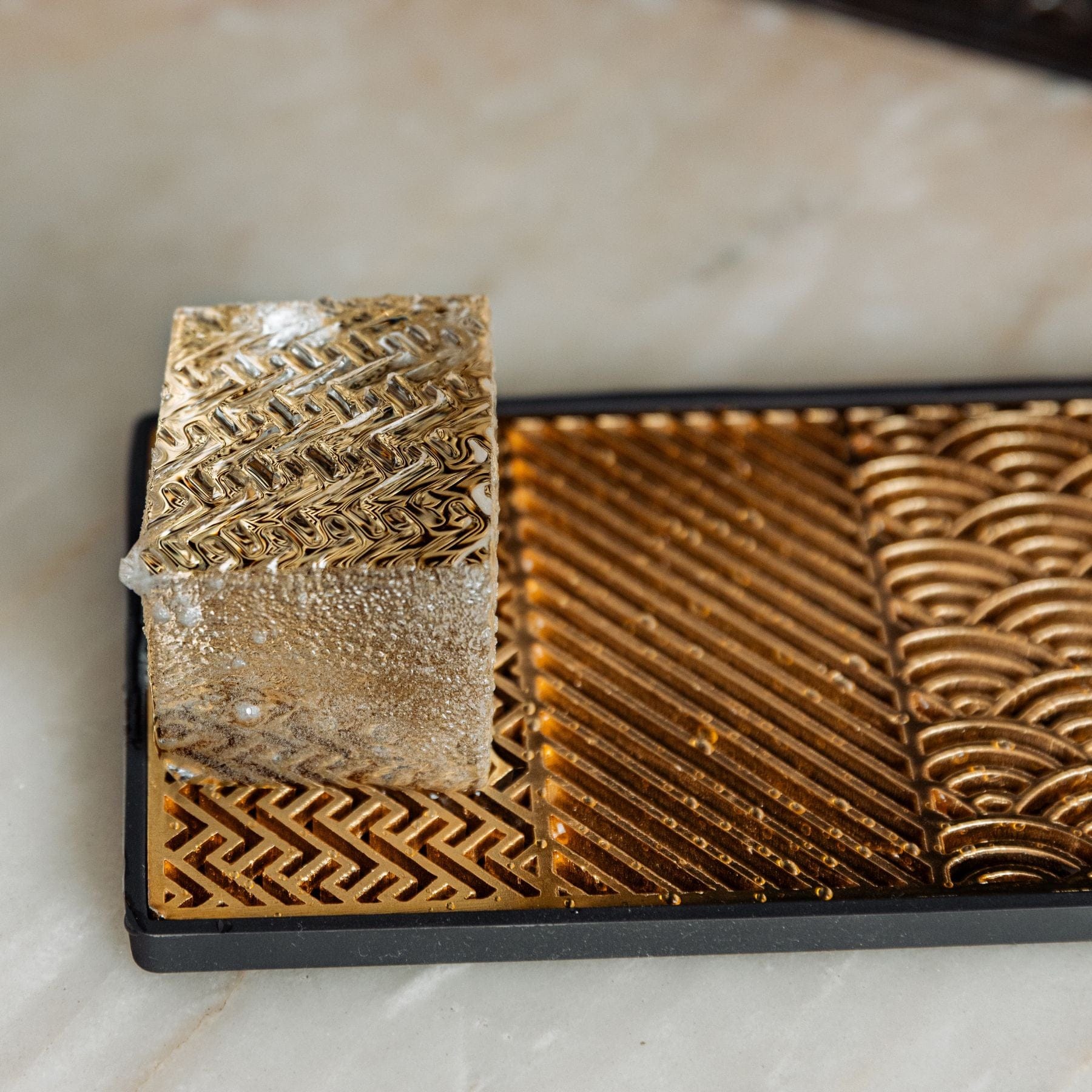 Created in collaboration with Missouri-based Ash Harbor, this ice-embossing tray presses your cubes with a mix of high-relief geometric patterns and original Death & Co artwork. The result: crisp, textured faces that catch the light and quietly flex in any glass.