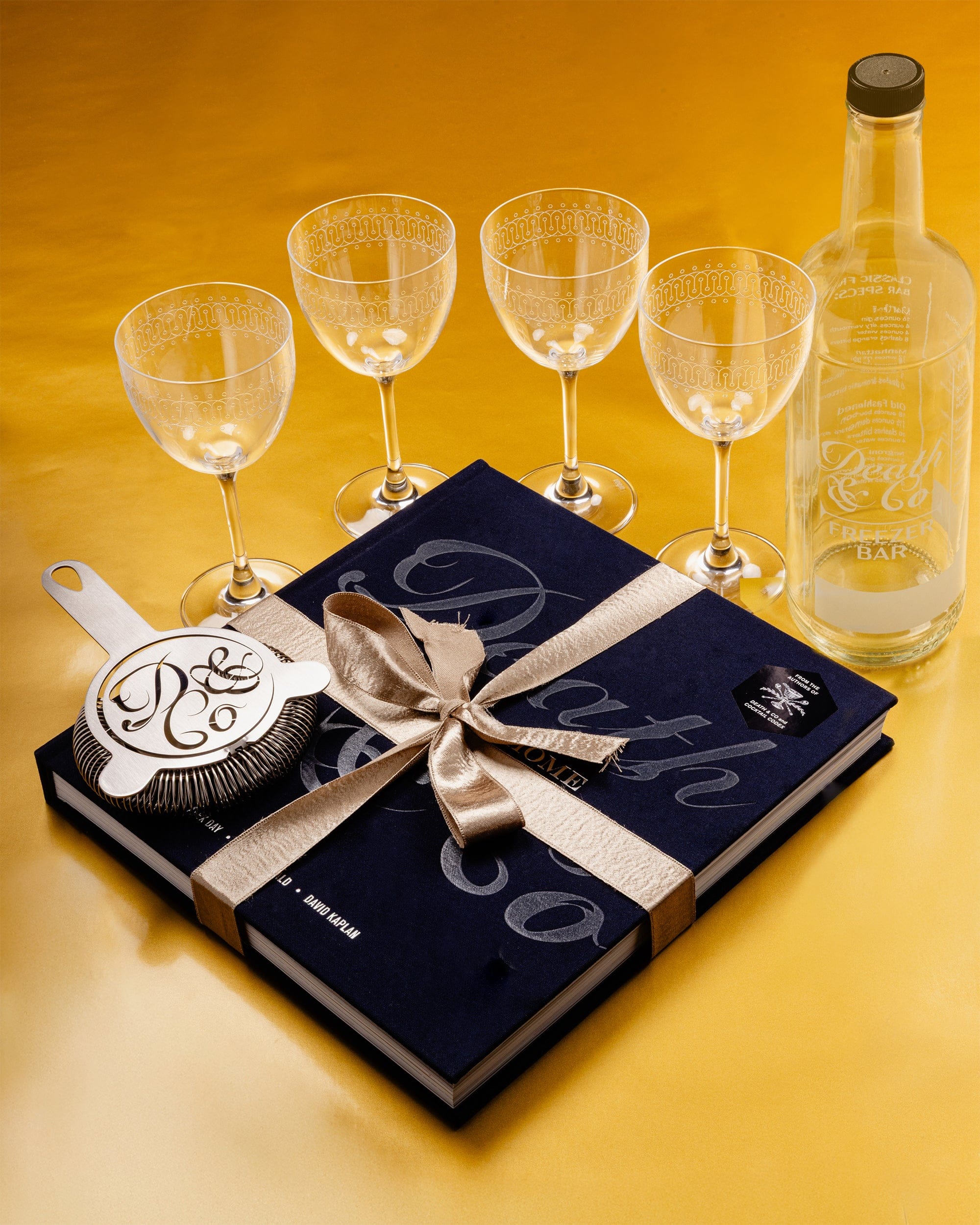 The Holiday Hosting Bundle is your fast track to bar-quality service at home: four of our timeless 1950 Nick & Nora glasses, the Death & Co Welcome Home book for our best hosting advice, our Freezer Bar Bottle for batching perfectly chilled cocktails in advance, and the Mover & Shaker × Death & Co Hawthorne Strainer for perfect pours. Batch a Martini or Manhattan ahead of time, stash it in the freezer, then pour straight into the Nick & Noras when guests arrive—no shaker chaos, just cold, elegant drinks on demand. It’s a beautiful, gift-ready set that turns good intentions into effortless holiday hosting.